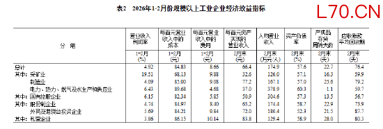 二、规模以上工业企业利润总额、营业收入等指标的增速均按可比口径计算。报告期数据与上年所公布的同指标数据之间有不可比因素,不能直接相比计算增速。其主要原因是:(一)根据统计制度,每年定期对规模以上工业企业调查范围进行调整。每年有部分企业达到规模标准纳入调查范围,也有部分企业因规模变小而退出调查范围,还有新建投产企业、破产、注(吊)销企业等变化。(二)加强统计执法,对统计执法检查中发现的不符合规模以上工业统计要求的企业进行了清理,对相关基数依规进行了修正。(三)加强数据质量管理,剔除跨地区、跨行业重复统计数据。