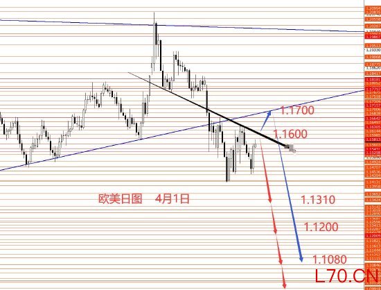 欧元三月正如预期震荡下行至1.1410区域。从图形来看,欧元还在区间震荡,后市中线1.1680以下继续看跌。本月上方重点关注1.1680强阻力,以下看跌,若后市成功站稳上方则需重新分析,这个框架就不能要了。本周操作建议:1.1600附近做空,止损1.1670,目标看向1.1310和1.1200,再看向1.1030和1.0870区域。本周红线概率较大些,蓝线做为备选方案。控制仓量,严格止损。