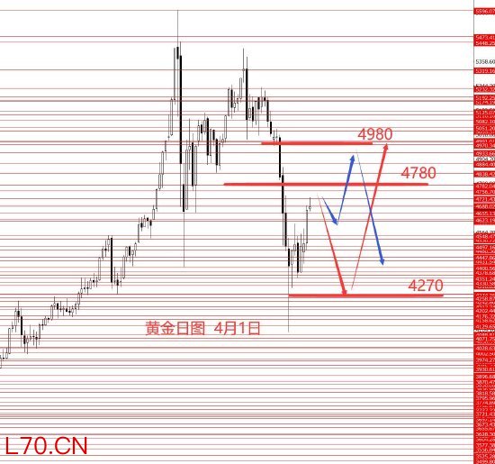 黄金三月也正如预期从5370跌至4780,最低4100附近,黄金中线波段思路正确。从图形来看,黄金四月区间震荡的概率相对较大些,区间先关注5000至4270,本月二次下探4270的概率相对较大些,只是不确定是先测试了5000再跌,还是连4780都上不去先下探4270再向上测试5000区域。今日没有具体操作建议,只有一个大概框架,重点关注周五非农数据,下周一行情明朗些会再更新文字稿件,大家敬请期待。