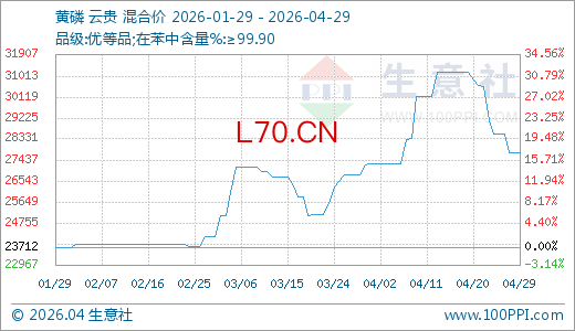 04月29日黄磷27756.00元/吨 60天上涨14.82%