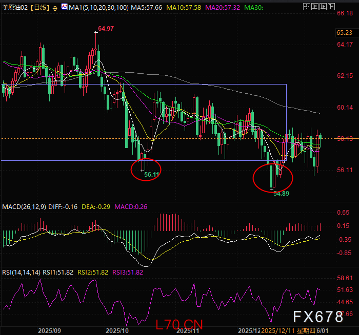 北京时间19:44,美原油2月期货合约现报58.26美元/桶。
