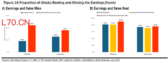 Wolfe Research的一份报告显示,当Polymarket用户押注某公司盈利表现可能不及预期时,这一押注应验的概率为44%,是历史基准水平18%的两倍多。而当押注者非常看好某公司盈利将超出预期时,这种情况发生的概率高达90%,高于81%的常规水平。
