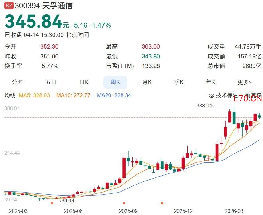 这家光通信龙头,一年来成为市场宠儿。截至4月14日,其市值超过2600亿元,相较12个月前,大涨2300亿。
