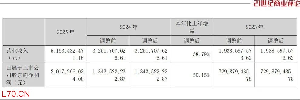 天孚已进入英伟达供应链,也在华为、中兴的采购体系中占据重要地位。其2025年收入为51.6亿元,净利20亿元,同比大涨五成。